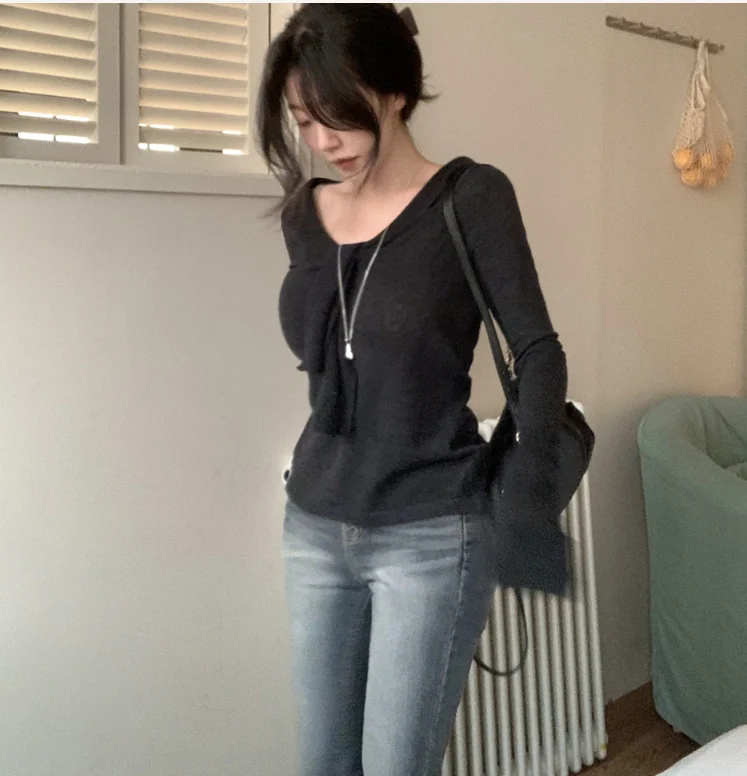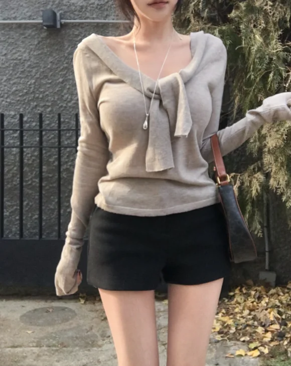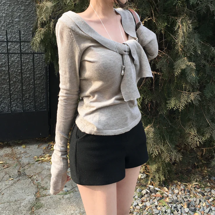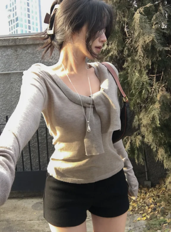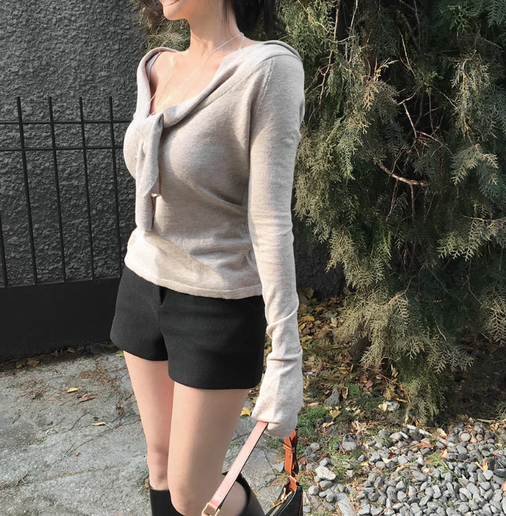 This knitwear features a French sexy design, perfect for those who want to exude a sense of sophistication and allure.