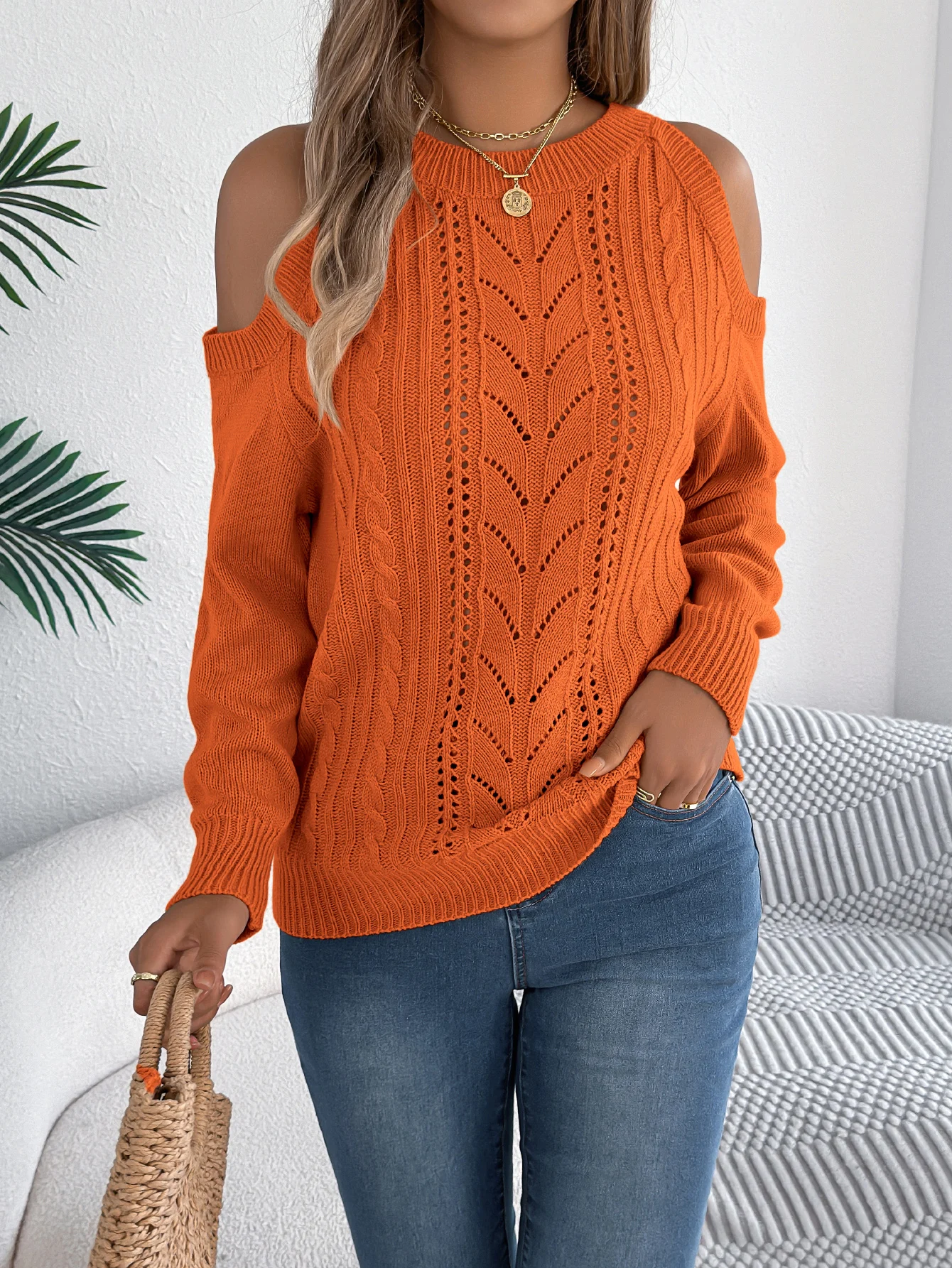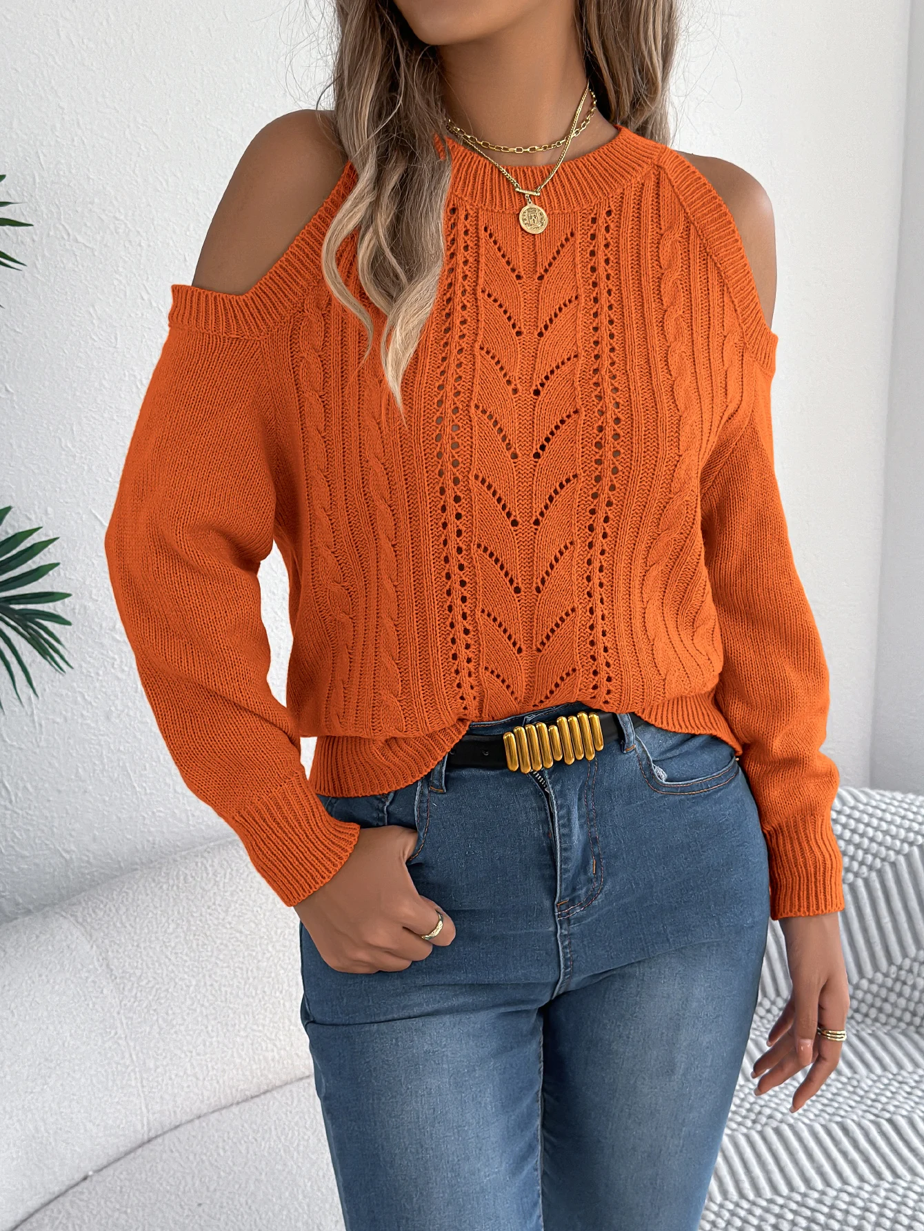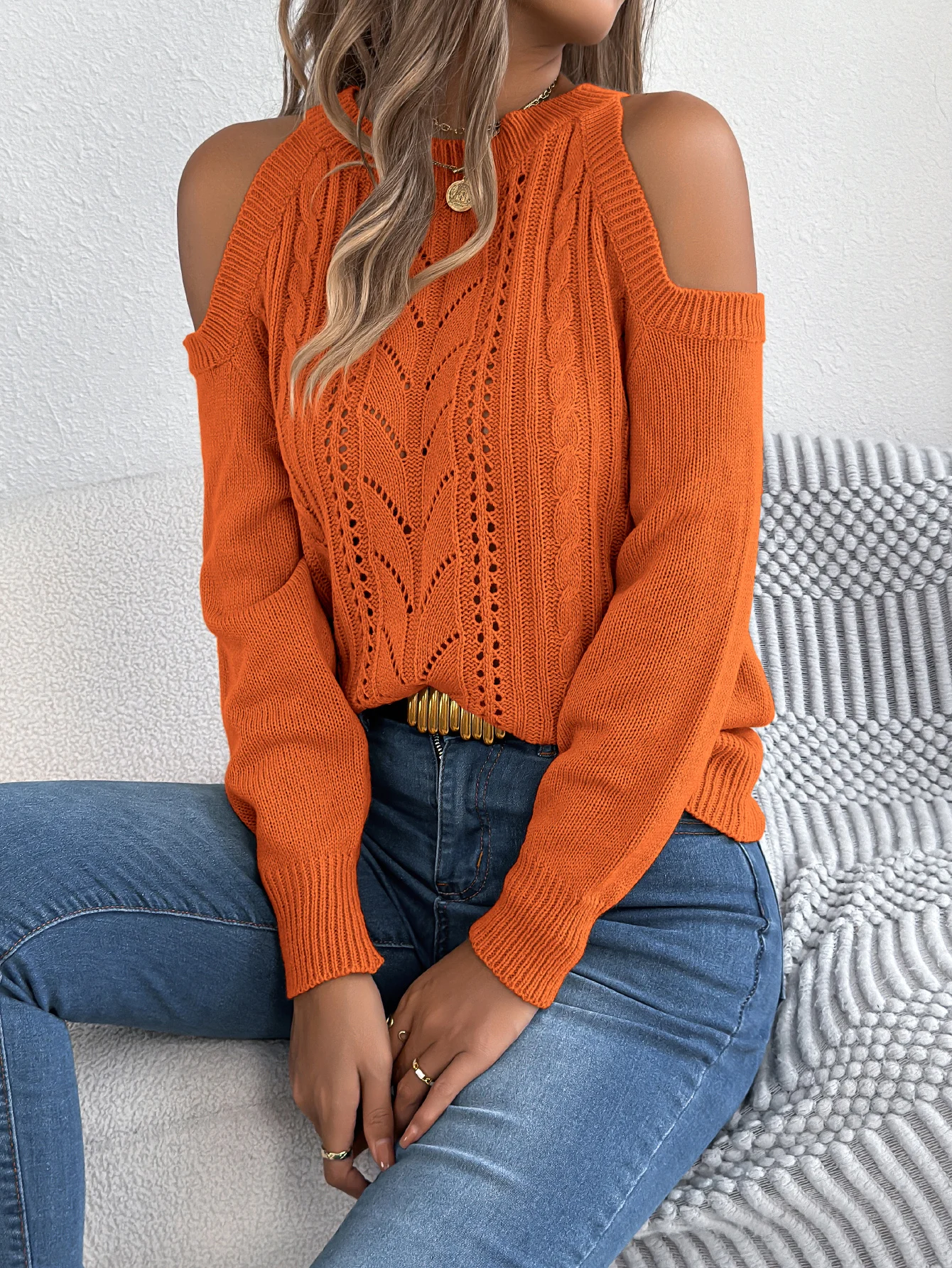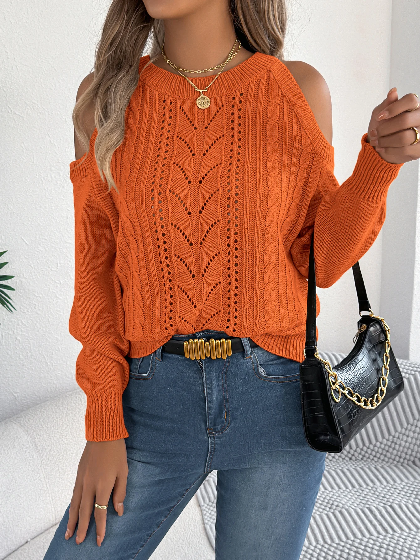 Off Shoulder Round Neck Pullover Hollow Out Twist Knitted Sweaters