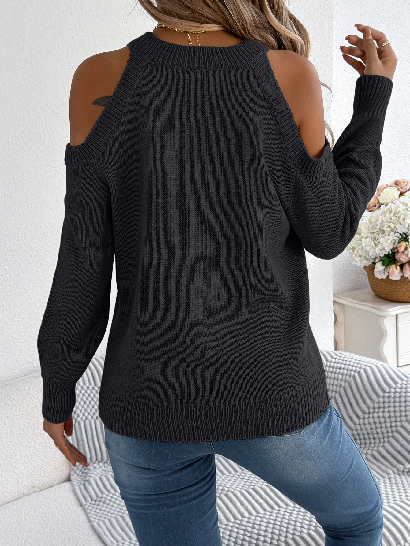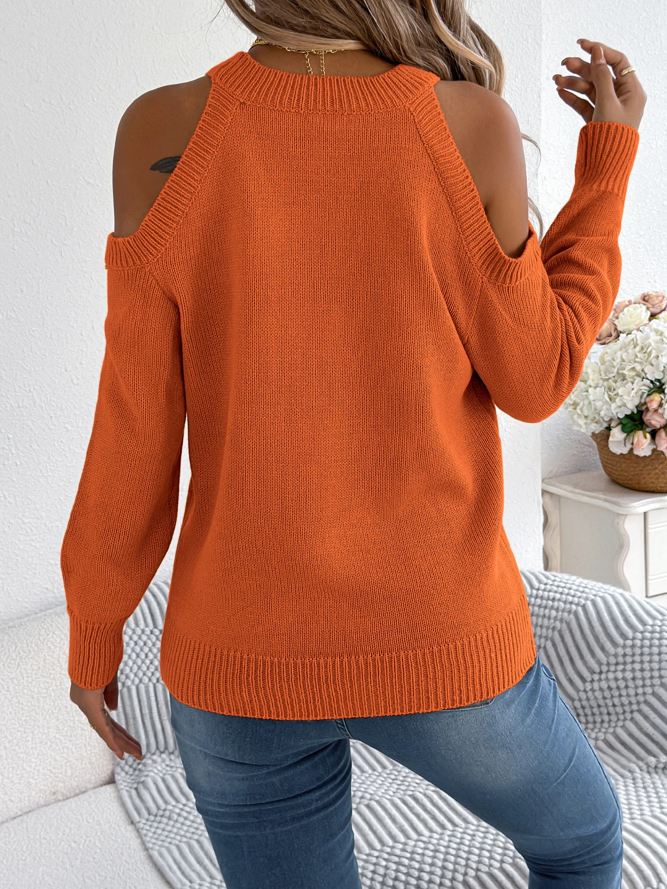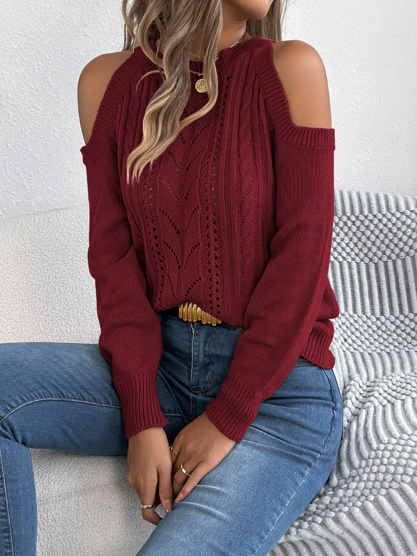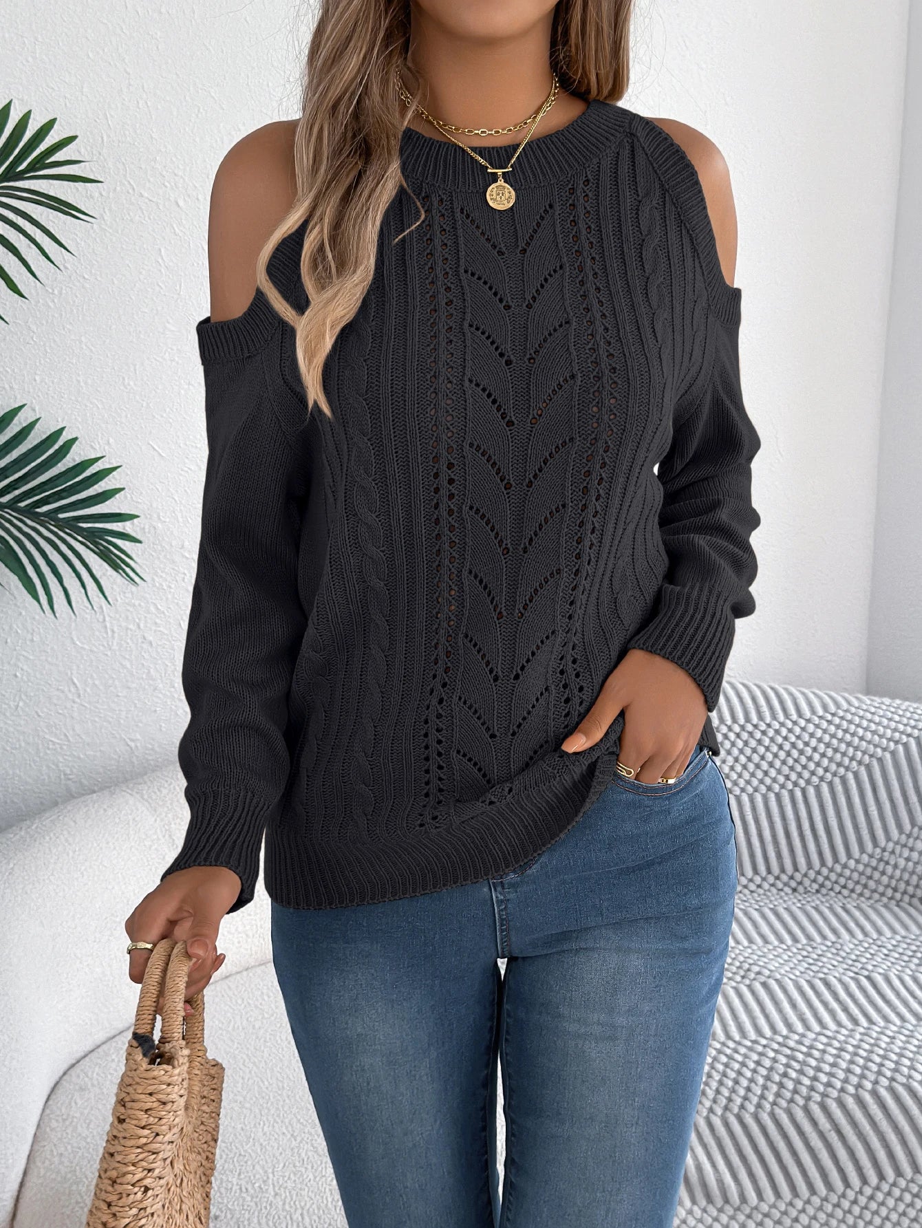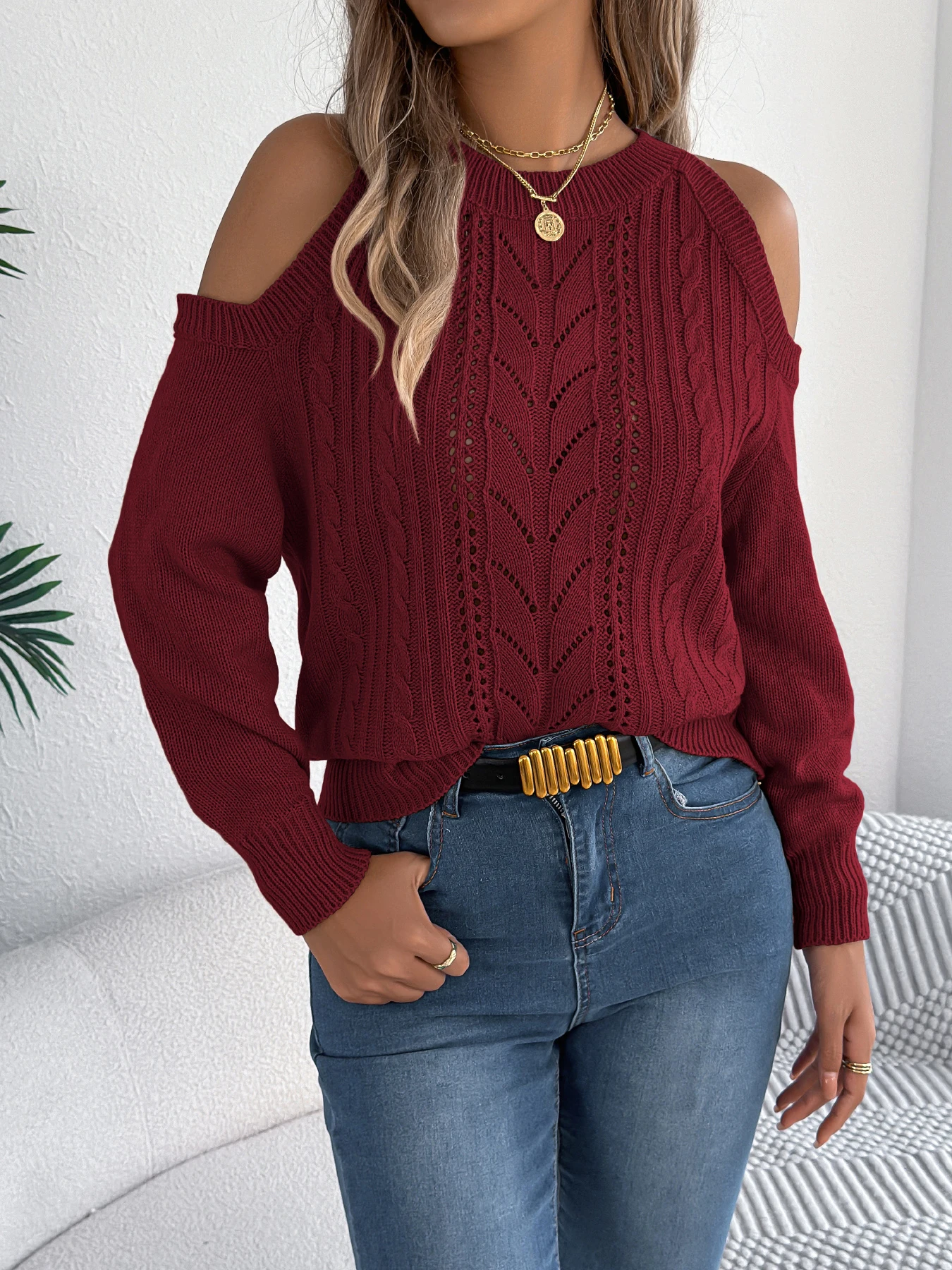 Off Shoulder Round Neck Pullover Hollow Out Twist Knitted Sweaters