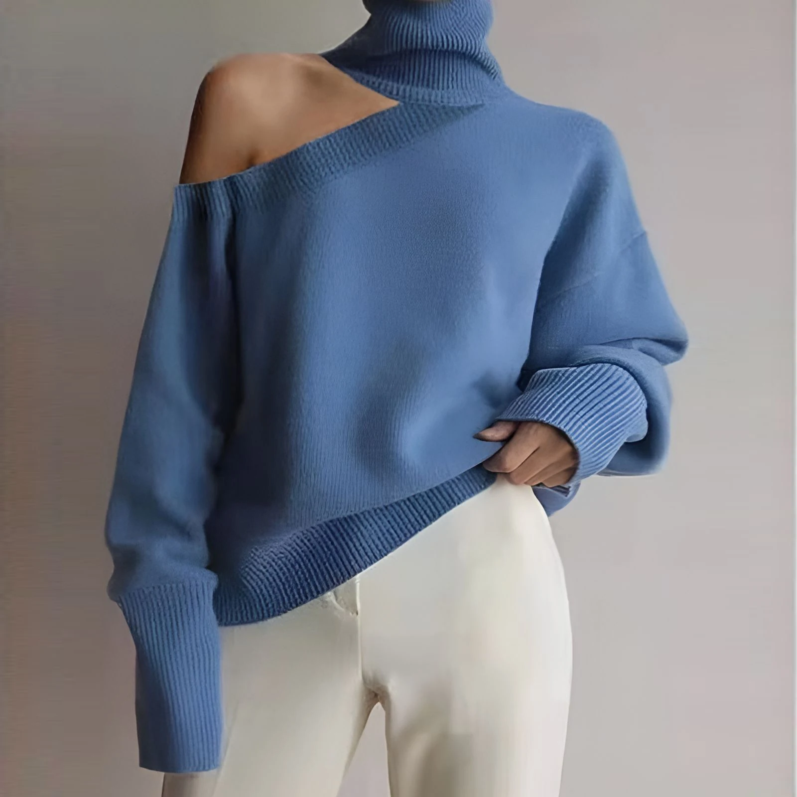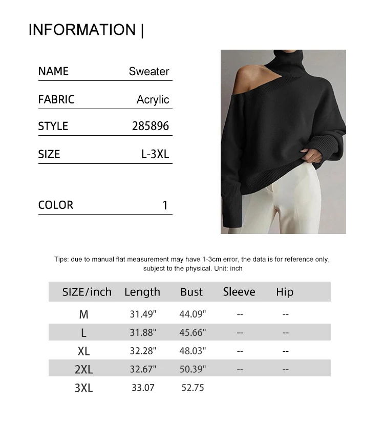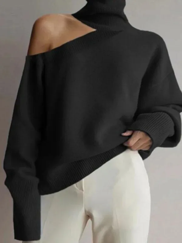 Single shoulder sleeve turtleneck pullover sweater Solid color Fashion Street Elegant Autumn